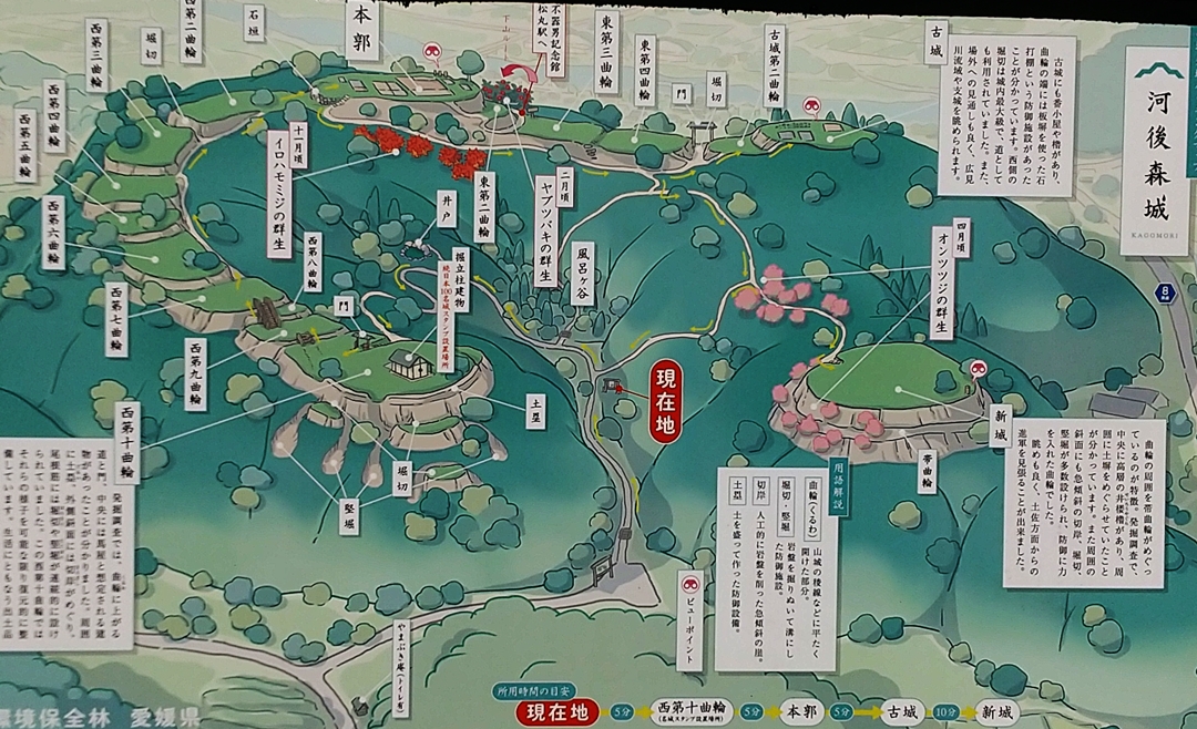 興味深い出来事をしいてあげれば、藤堂高虎が宇和島城主だったときに、この河後森城の天守を解体して運び、宇和島城の月見櫓に移築したとのこと。