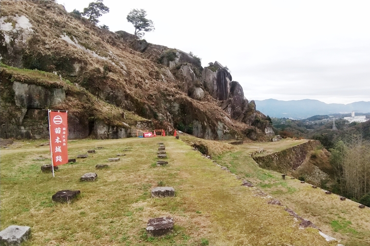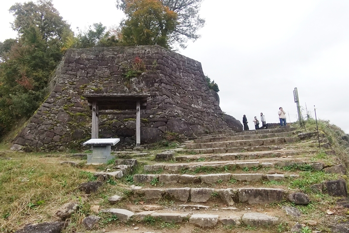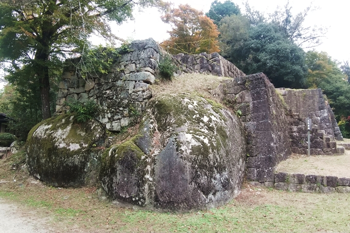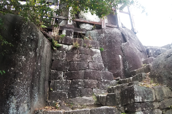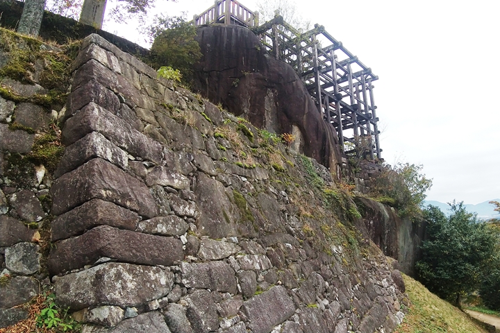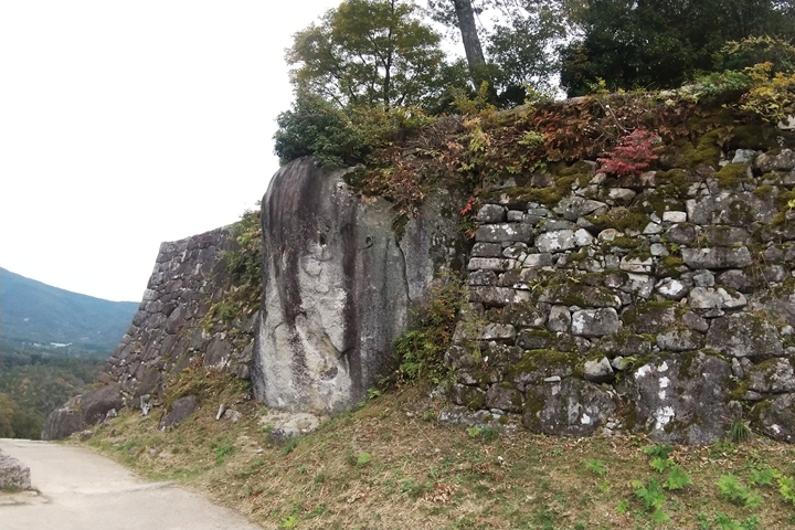 今回ここ苗木城で注目したいのは、山城とはいえその山が岩山ゆえに、自然の岩を取り入れながら人の手による石積と合体して特異な石垣となっていること。
