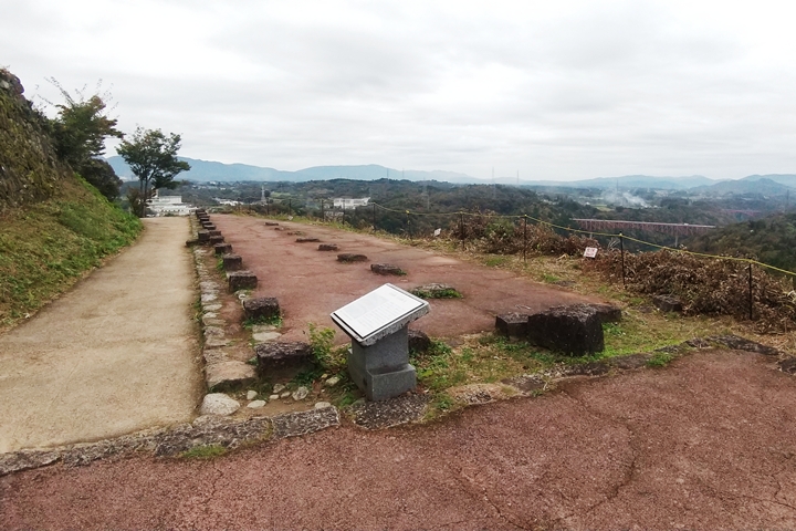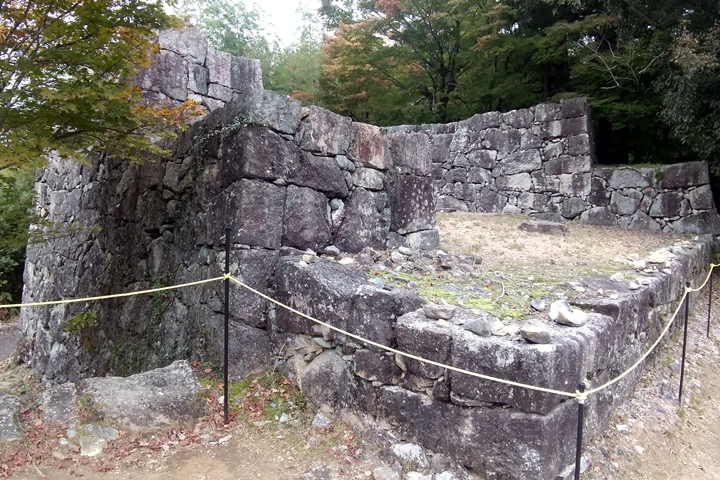 巨大な石垣の上に巨大な櫓(矢倉)がひとつあったのではなく、石垣上の最奥の一段高い石積みの上に2層3階の大矢倉が建ち(1階部分は石垣のなかにかくれて倉庫になっていた)、周辺に小振りの櫓が並立していたものと考えられます。