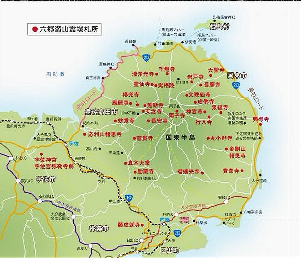 国東六郷満山とは、国東半島の六つの郷(田染、来縄、伊美、国東、武蔵、安岐)に古来つたわる山岳信仰を土台にして、そこに神仏習合の発祥地とされる宇佐神宮(宇佐八幡宮)の影響のもと神と仏が融合し、さらに天台密教の修験道がくわわり独自の山岳仏教がはぐくまれた、その寺院群の総称です。