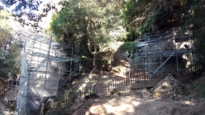 熊野摩崖仏は像本体に繁茂した植物を除去するなど大掃除のため、昨年末から今年の3月いっぱいはこの状態です。