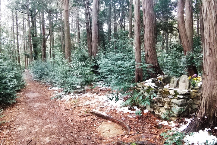 ほかの山々も、いま歩いている尾根道(京都一周トレイル)から外れた山麓に点在する超低山(丘陵)として存在しているようなので、いったんは下山します。