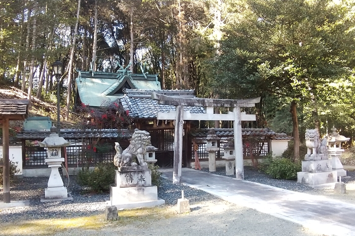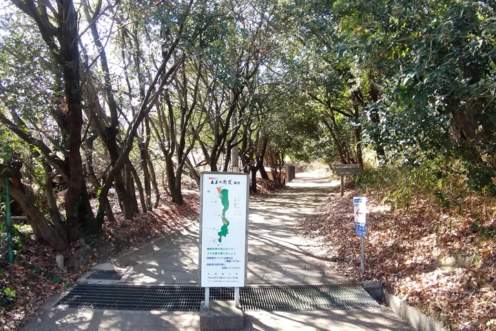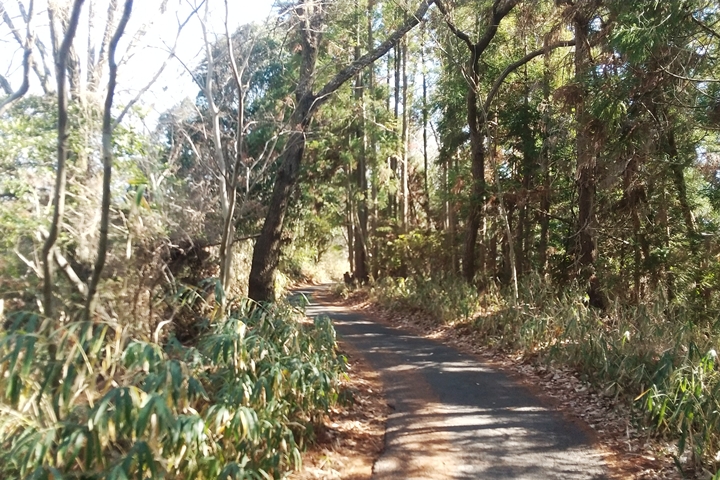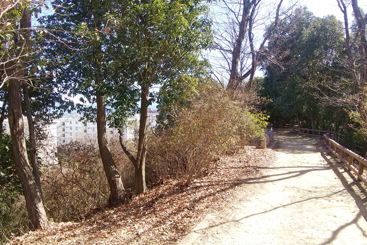 天野街道は小高い尾根道を歩きますが、山深いとは言い難いため木立の隙間から下界の建物が丸見えです。