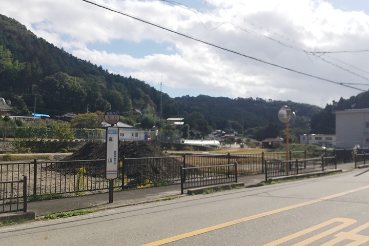 まずお断りしておかねばならないのは、「箕面滝からさらに奥(北)を探索する」と言ったのですが、そのとおり滝から北へと歩くと最終的にこの高山バス停にたどり着きます。